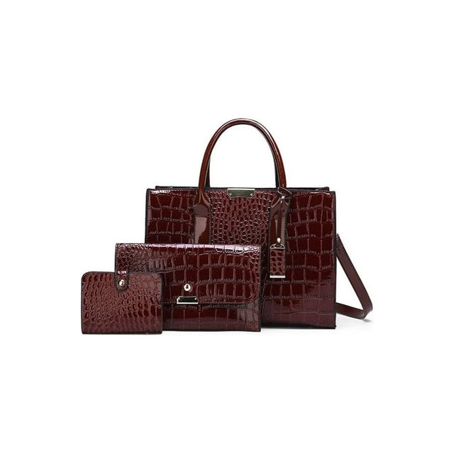 The Marbelleve Glam Zip Tote is crafted from patent leather and features a secure zipper closure, with a casual tote shape and a polyester lining.
