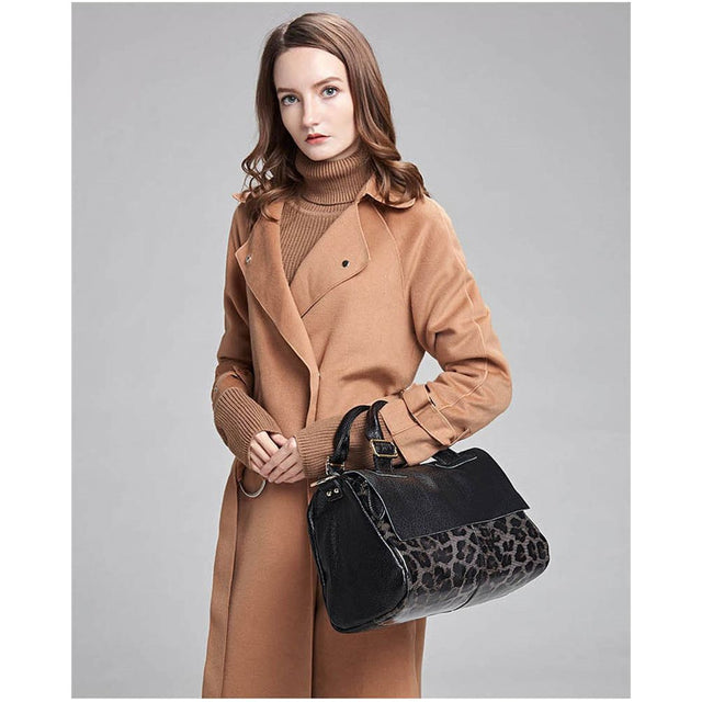 The Opulessa Zip Tote Bag is crafted from genuine cow leather, featuring a solid pattern and a secure zipper closure. Designed in a Boston shape, it offers a casual style with a single handle for easy carrying.