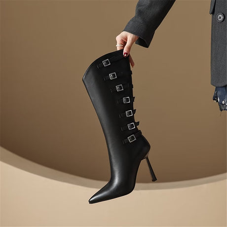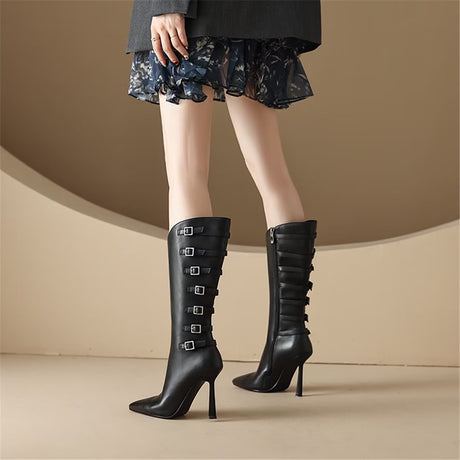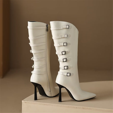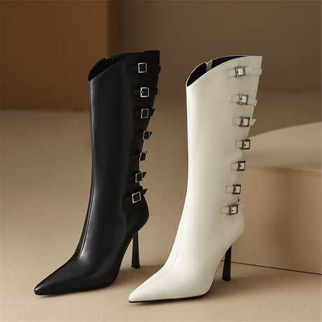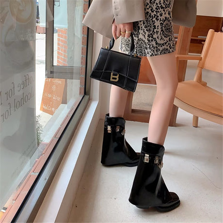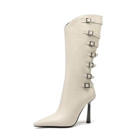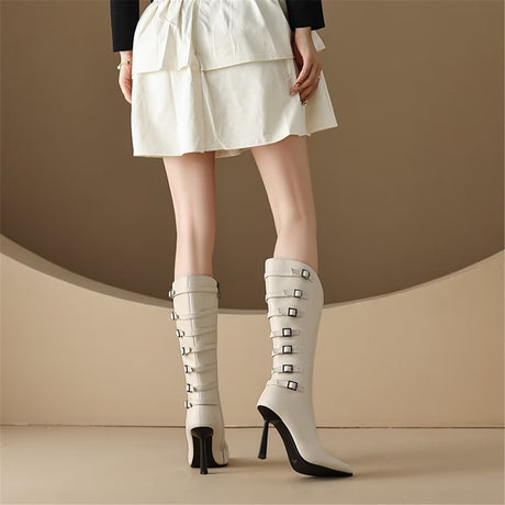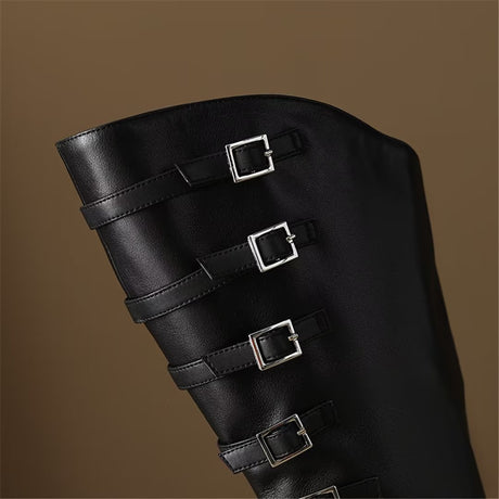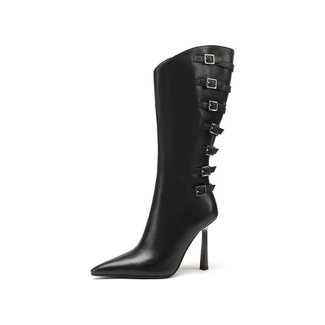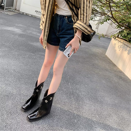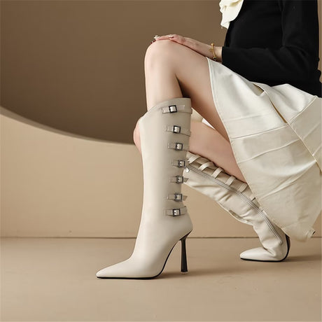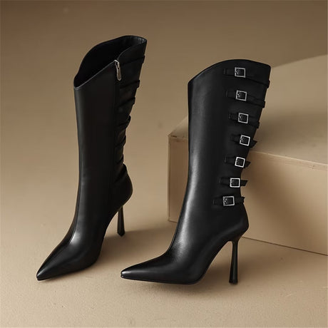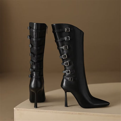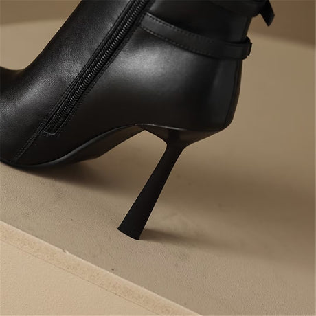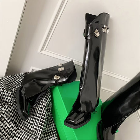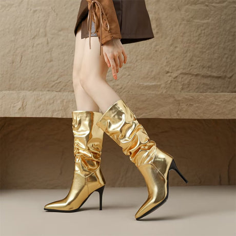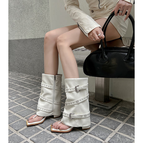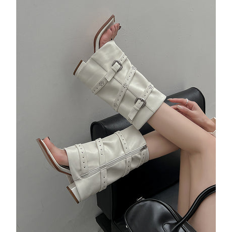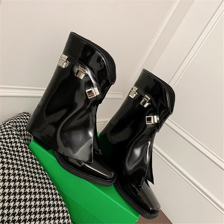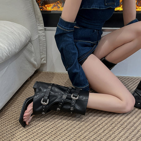 The Zephyrique Slip-On Elegance Boots are crafted with a PU exterior and plush lining, featuring a full grain leather insole for comfort. These mid-calf boots have a high square heel measuring approximately 2 to 3 inches, complemented by a subtle platform of up to 1 inch. Designed with a square toe and slip-on closure, they are ideal for winter wear, with a durable rubber outsole for traction.