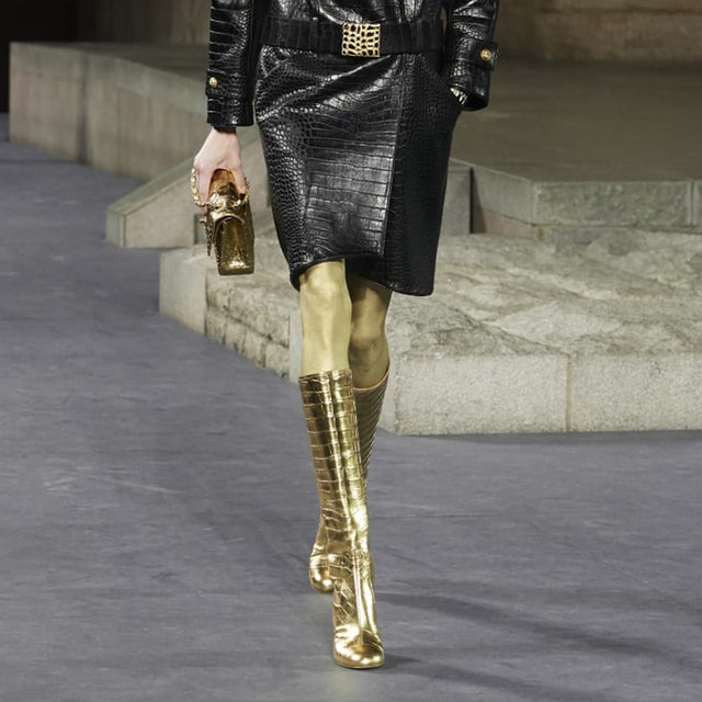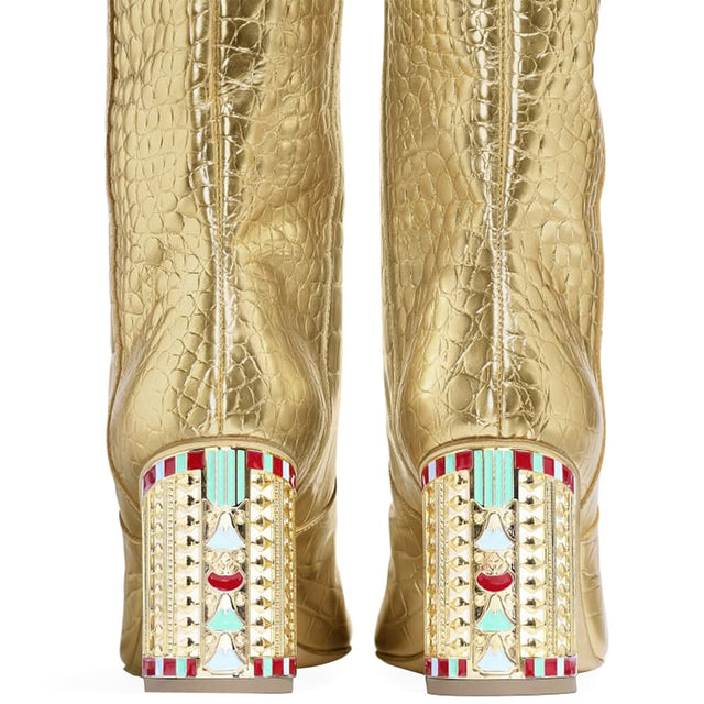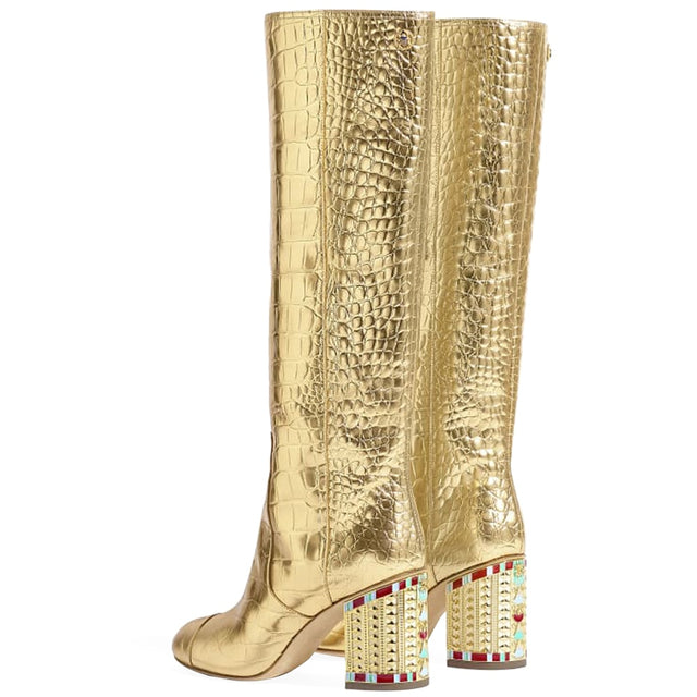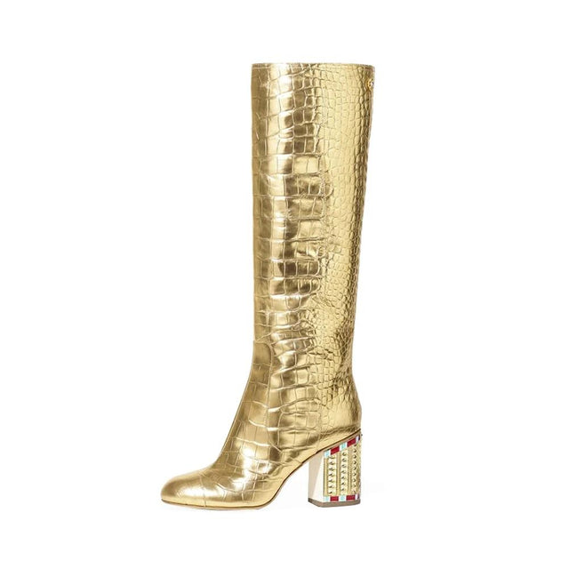 Croco-Embossed Texture Knee-High Leather High Heels Boots