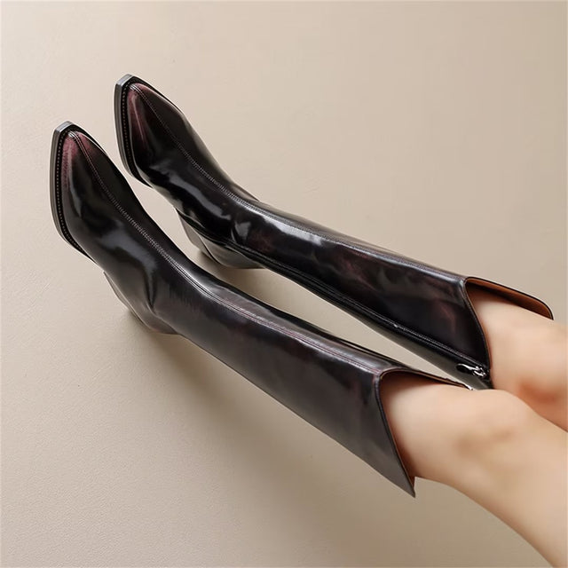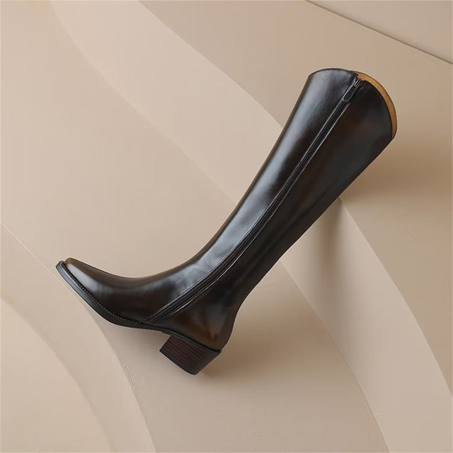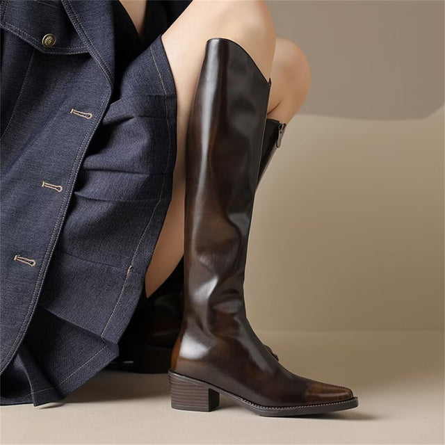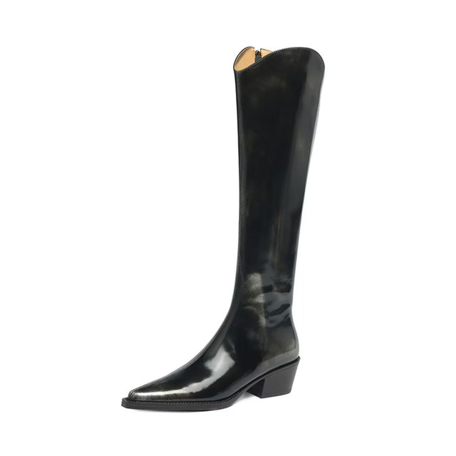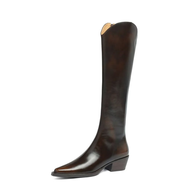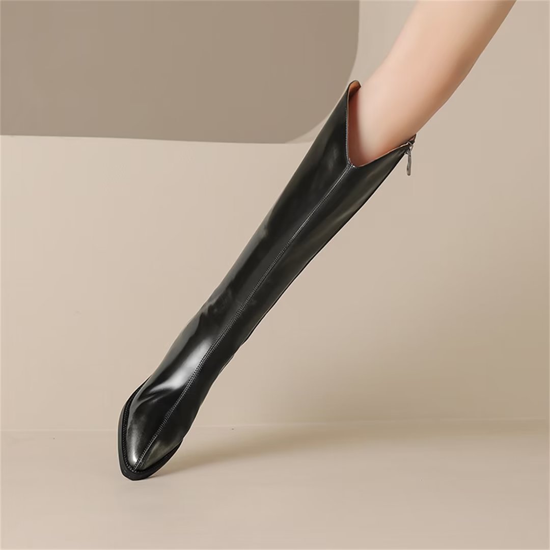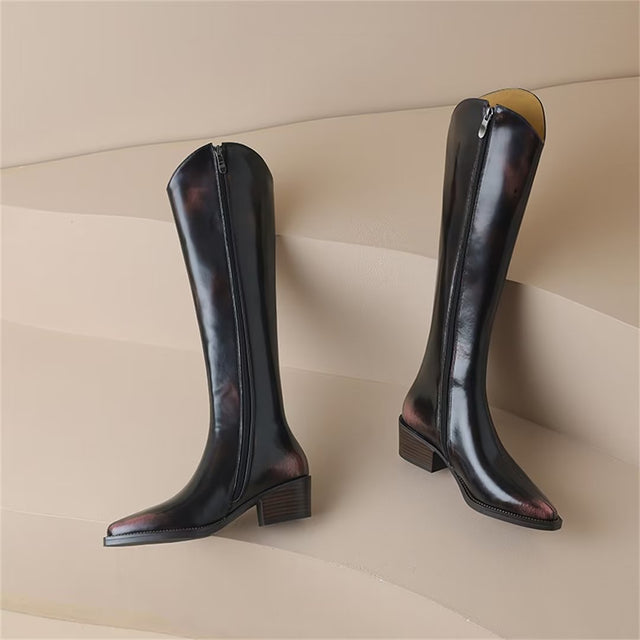The Auburnyx Luxe Tall Boots are crafted from genuine cow leather, featuring a pointed toe and a convenient zip closure, with a heel height of approximately 1.77 inches and a durable rubber outsole.