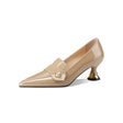 The Croctex Elanique Silkstride Heels feature a solid cow leather upper, a slip-on closure, and a pointed toe design, with a heel height of approximately 2.2 inches.