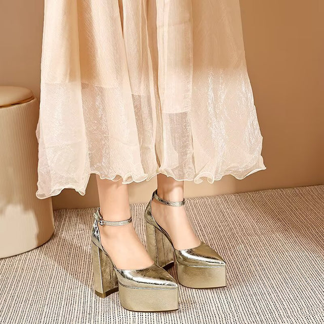 Introducing the Glissantra Glow Heels, crafted from smooth cow leather with a luxurious pigskin insole and a durable rubber outsole, featuring an elegant 4.72-inch heel for a sophisticated silhouette.