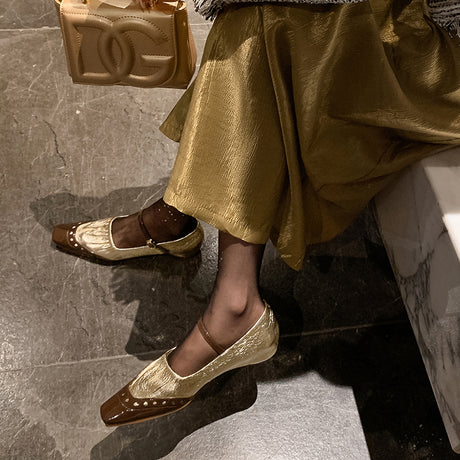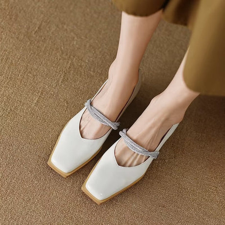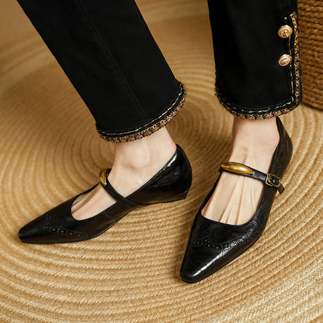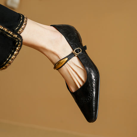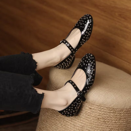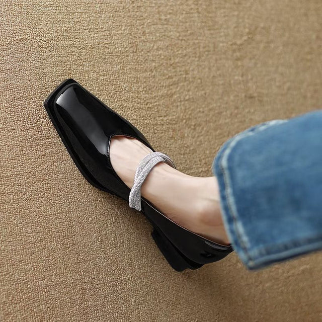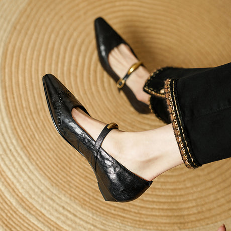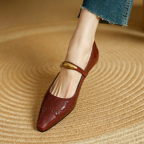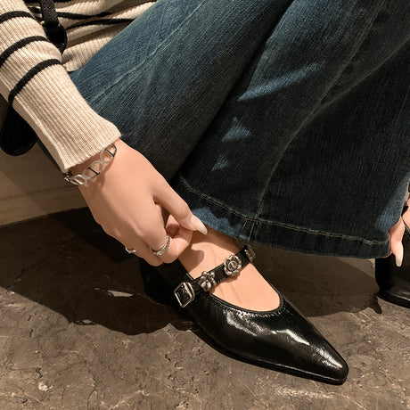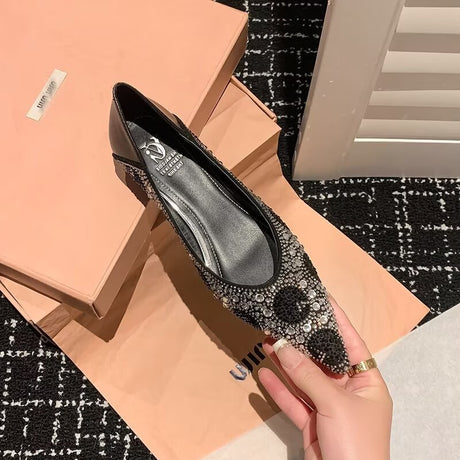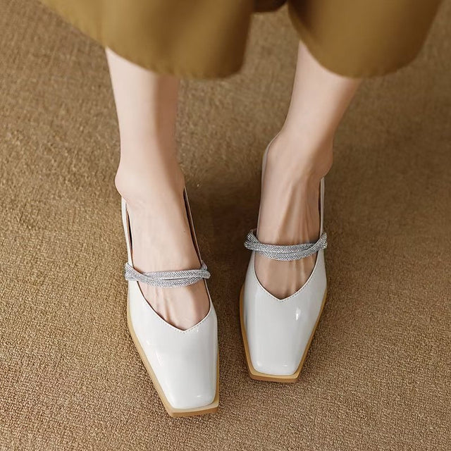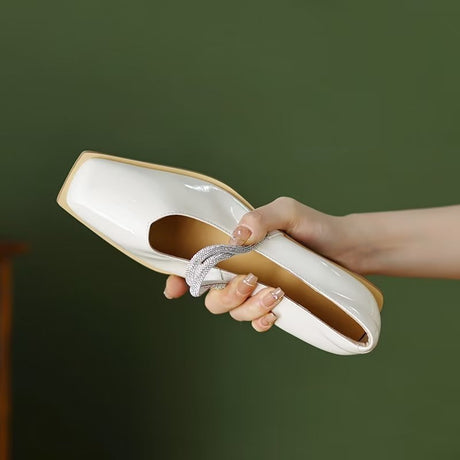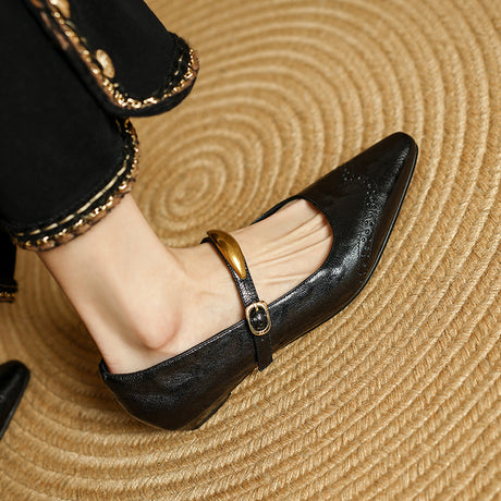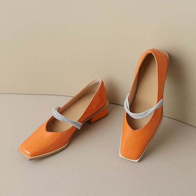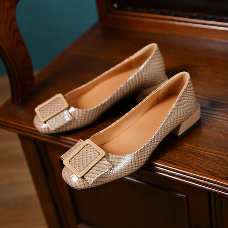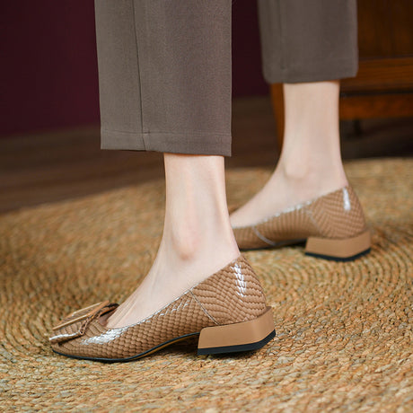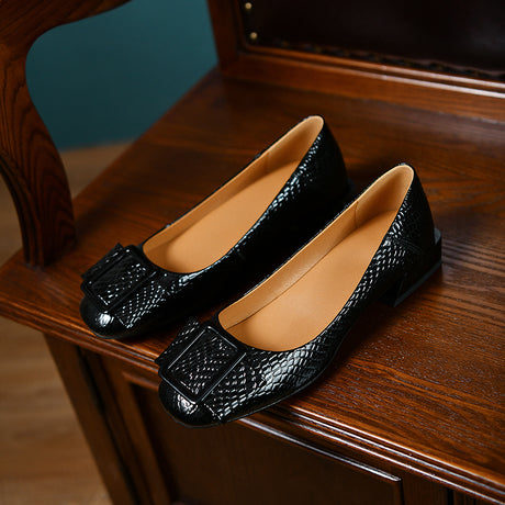 The Ebonique Elegant Event Heels feature a genuine leather construction with a sheepskin upper and insole, a square toe design, and a convenient slip-on closure, complemented by a 1.4-inch heel height.