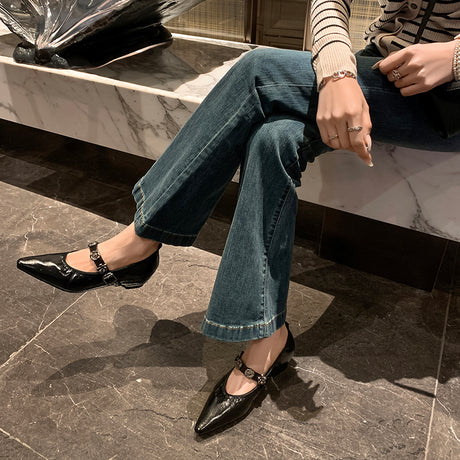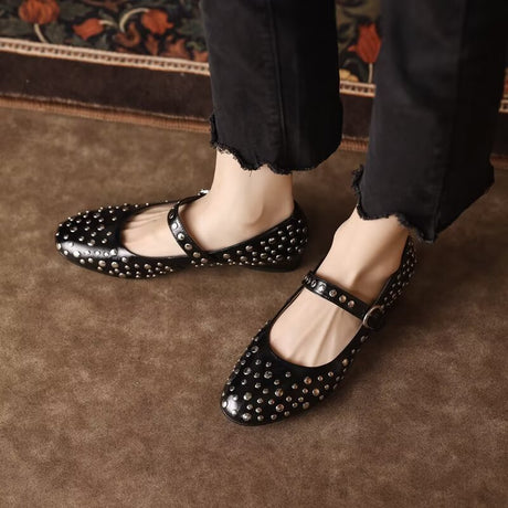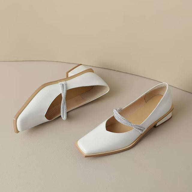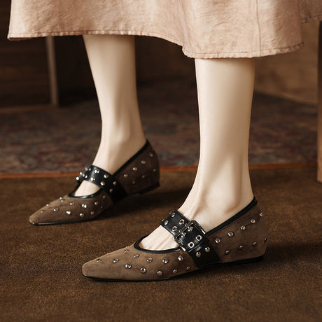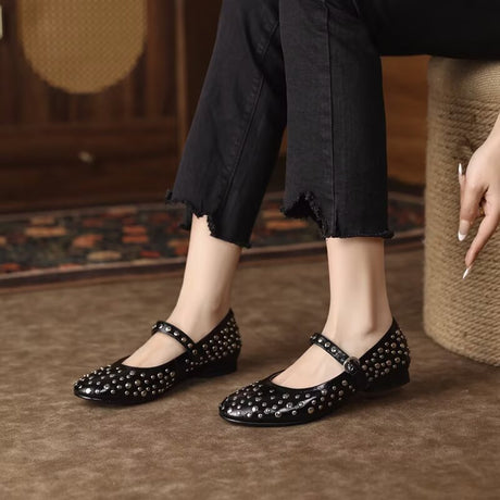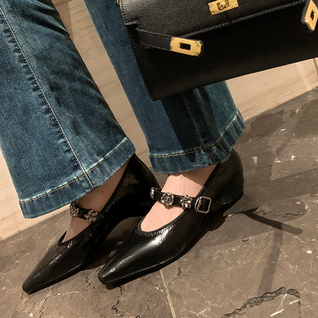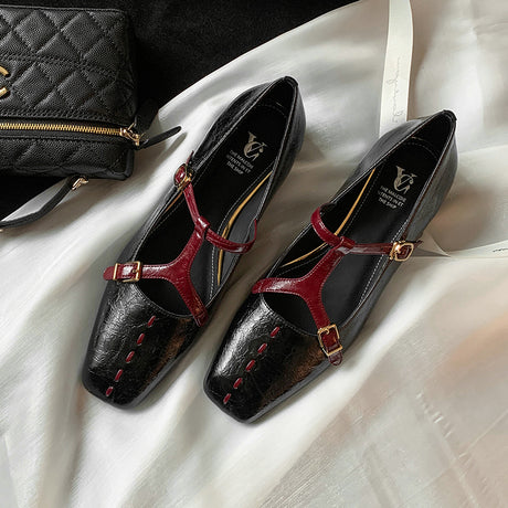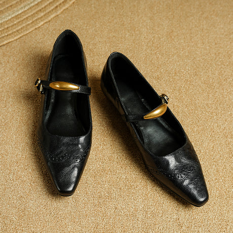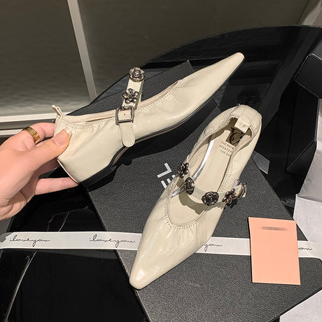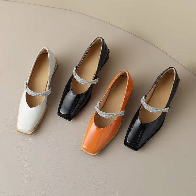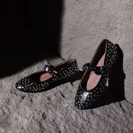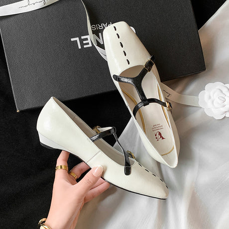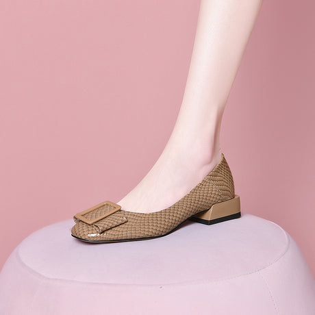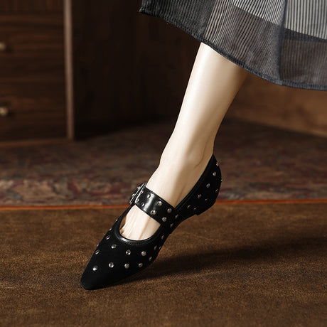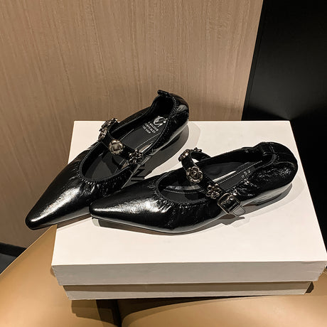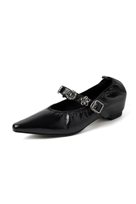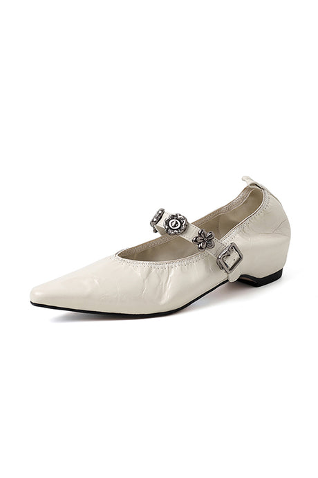 The Ebonique Elegant Event Heels feature a genuine leather construction with a sheepskin upper and insole, a square toe design, and a convenient slip-on closure, complemented by a 1.4-inch heel height.