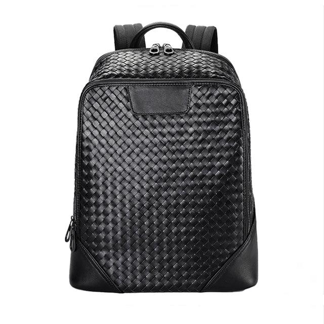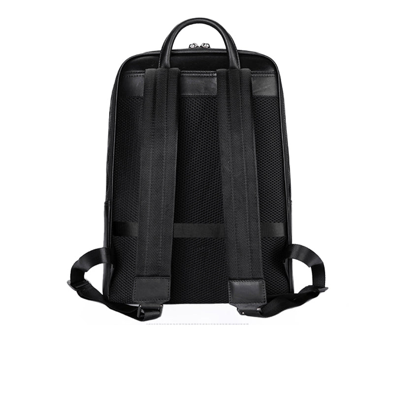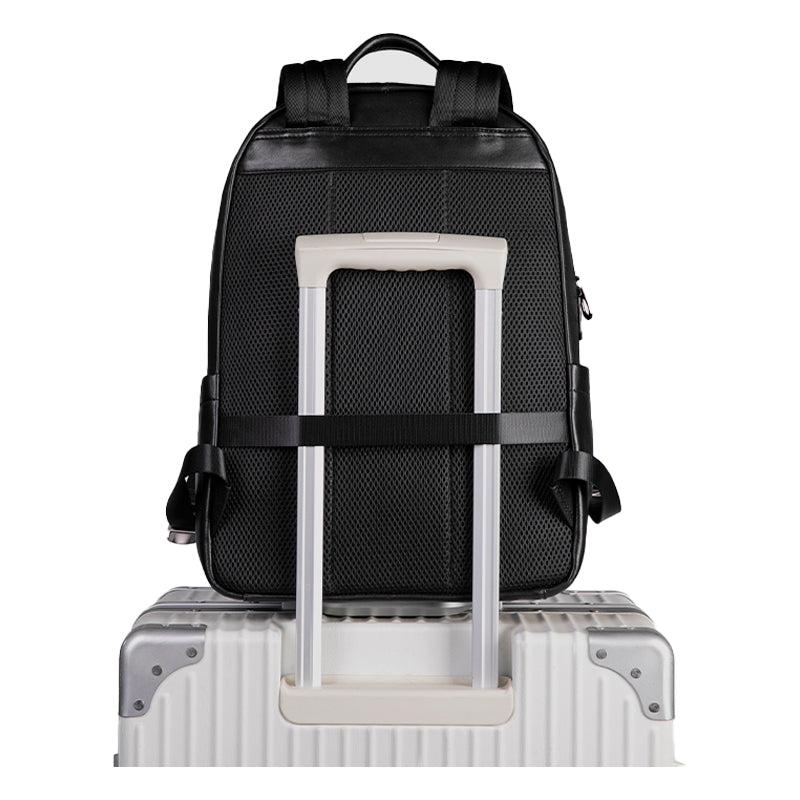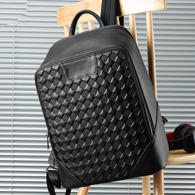The Veltique Nomad Carryall Backpack is crafted from genuine cow leather with a solid pattern, offering a capacity of 20-35 liters. It features a secure zipper closure, includes a rain cover for weather protection, and has a polyester lining with an internal frame design for added support.