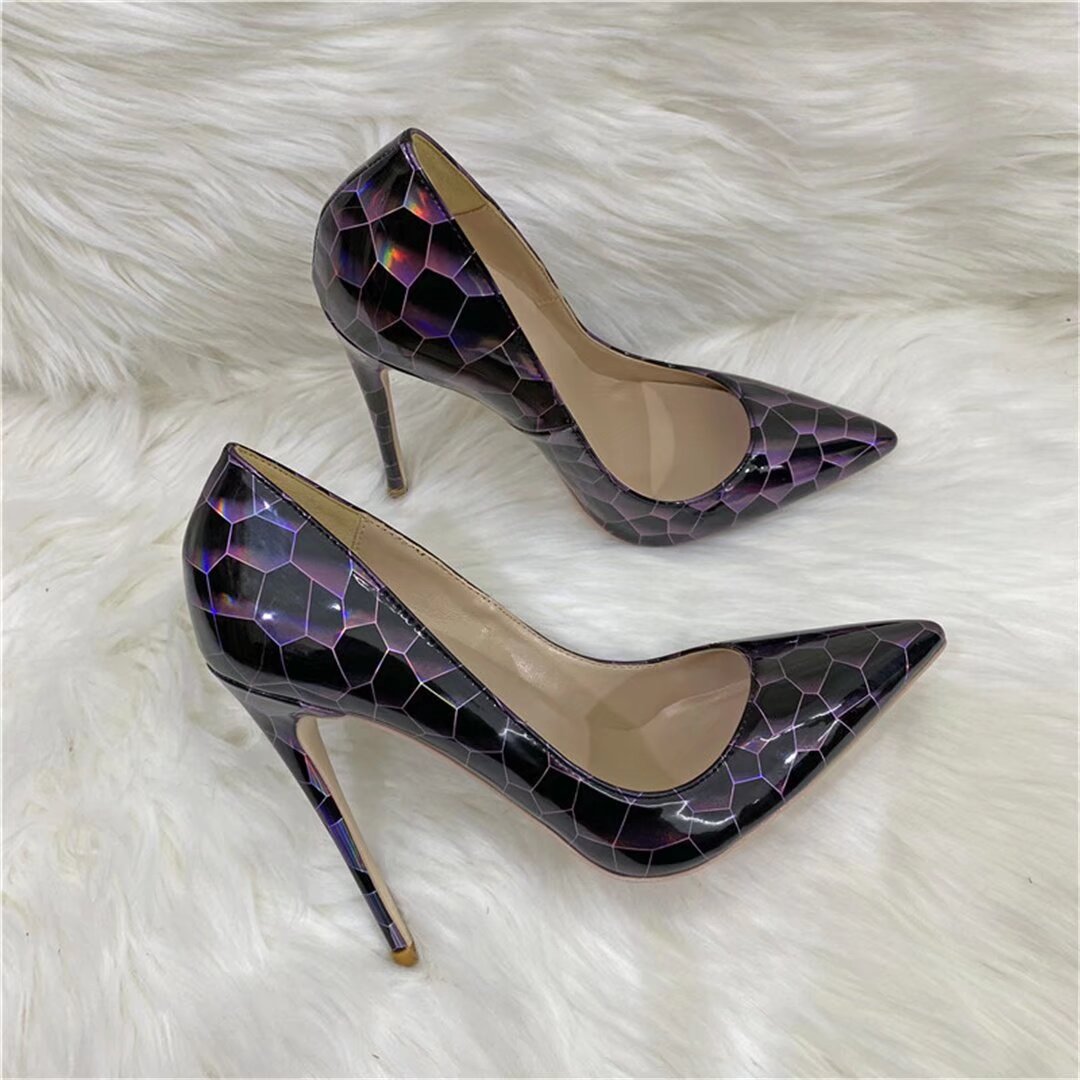 The Serpatura Elegance Glide Stilettos feature a microfiber exterior with a PU lining, a super high heel measuring over 3.15 inches, a slip-on closure for easy wear, and a pointed toe design, all fitting true to size.