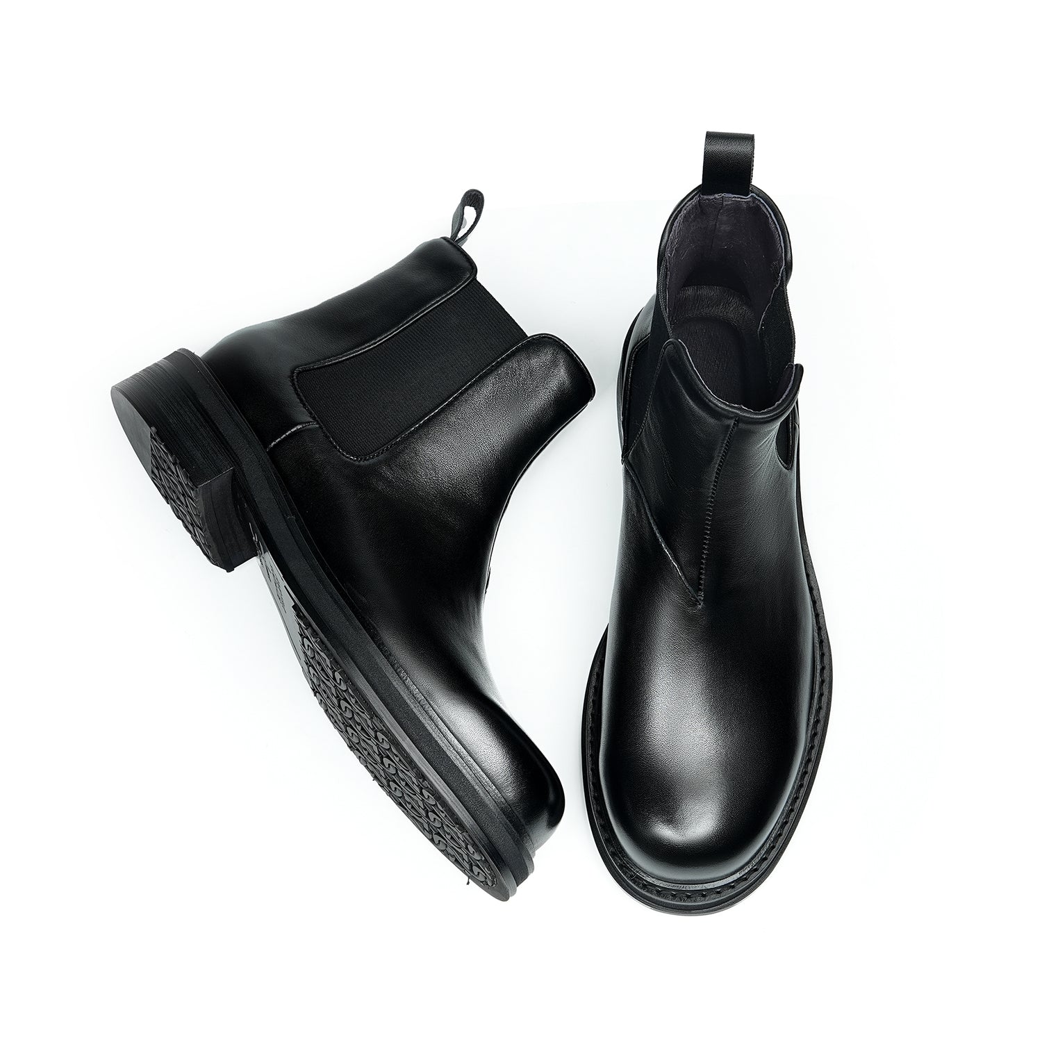 The Luxe Lace Veltique Ankle Boots are crafted from genuine cow leather, featuring a slip-on closure and a round toe design. These ankle-height boots have a 1.6-inch heel and are lined with a combination of leather and short plush for added comfort.