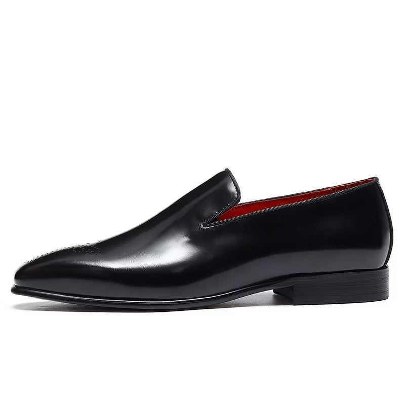 The Serpatura Luxe Slip-Ons are crafted from genuine cow leather with a solid pattern and feature a convenient slip-on closure. They have a distinctive square toe design, a lining made of genuine pigskin, and a durable rubber outsole, making them both stylish and functional for everyday wear.