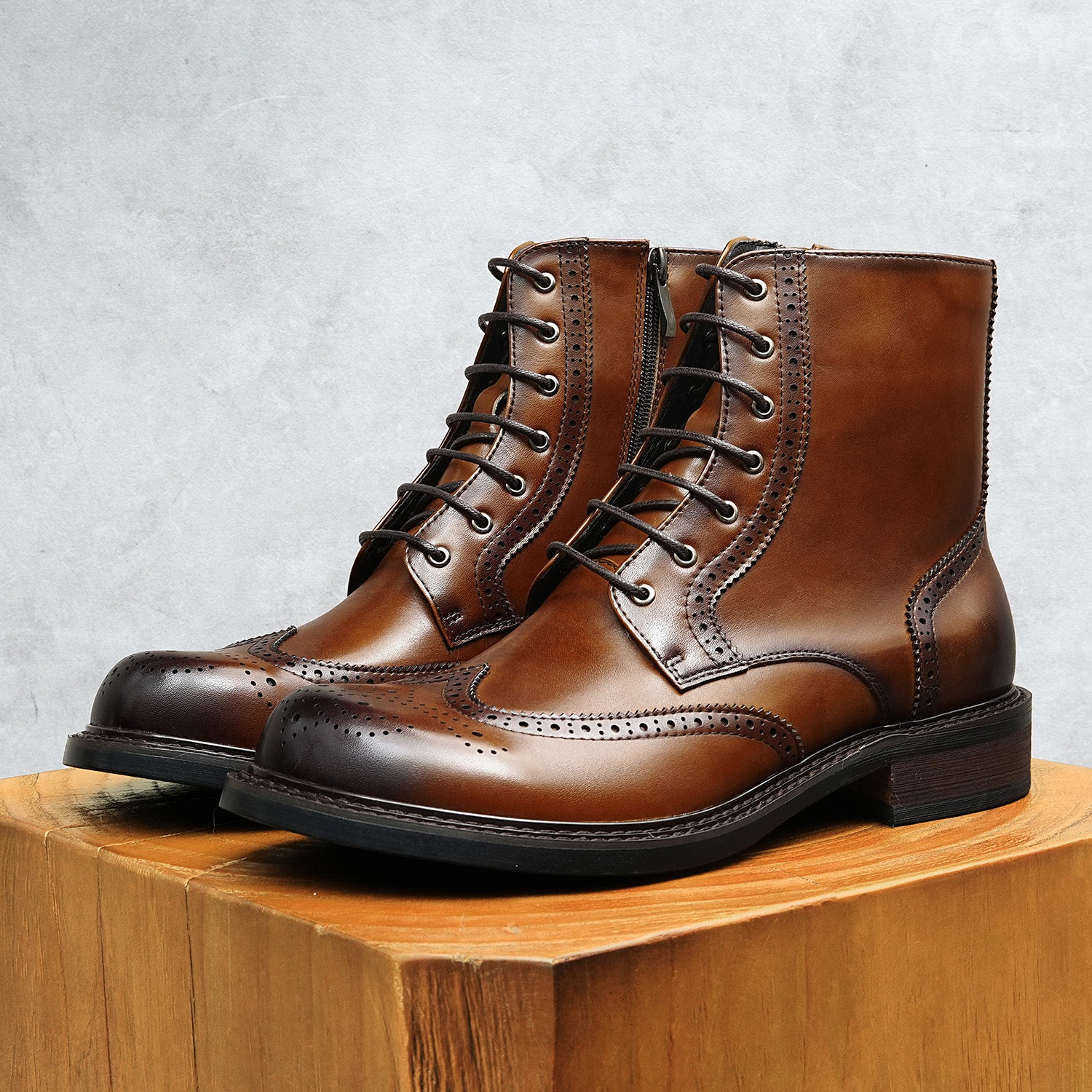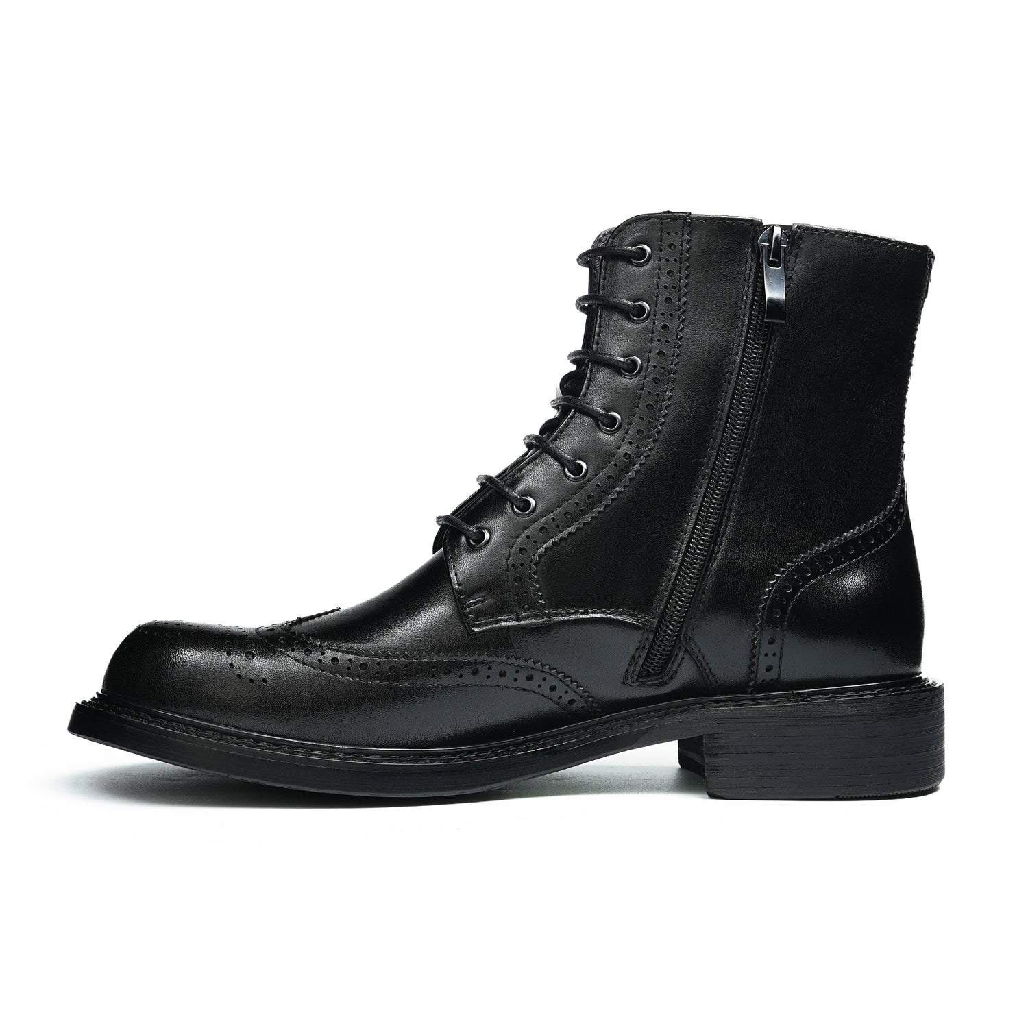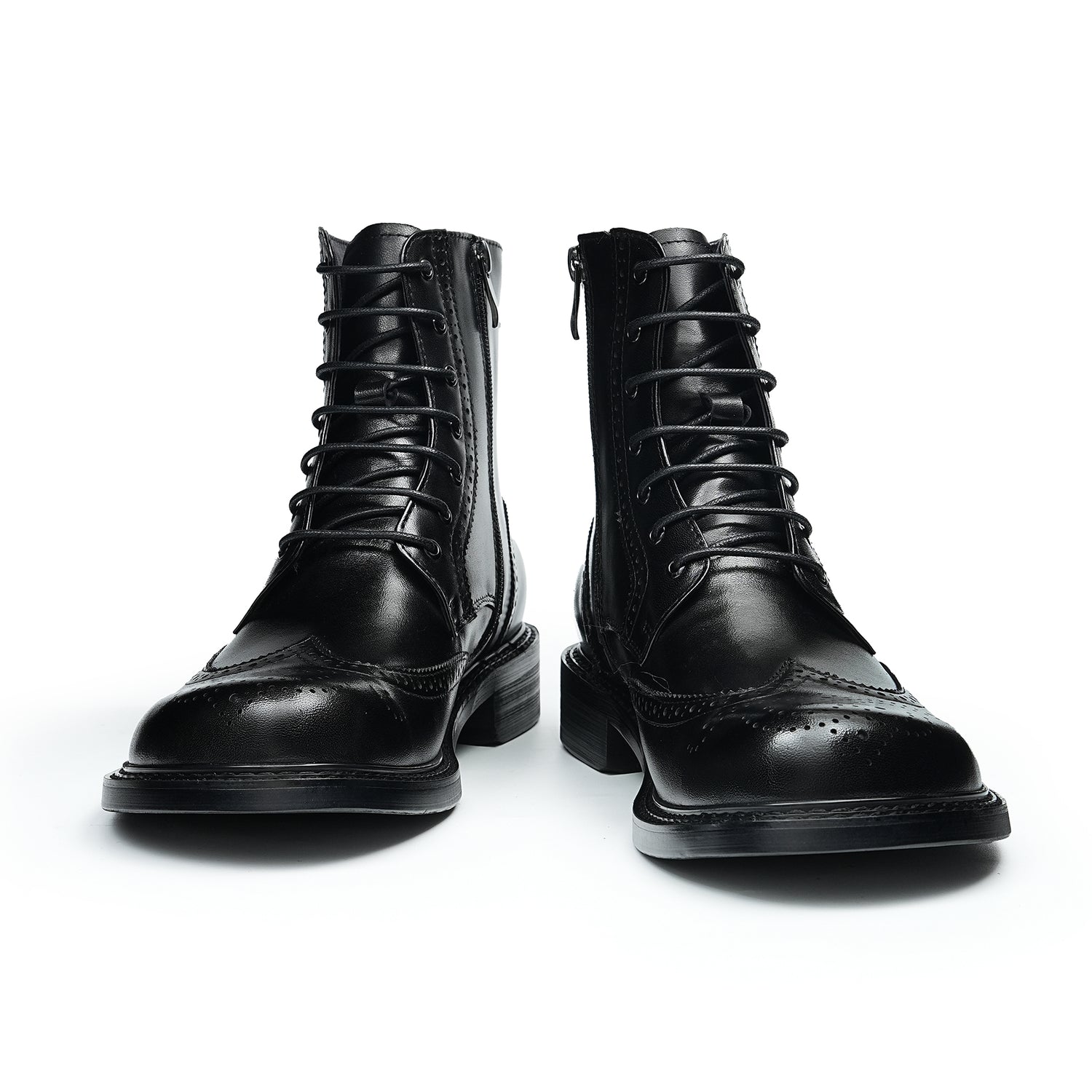 The Serpatura Elegant Office Bootwear features a solid cowhide exterior with a soft sheepskin lining, a 2-inch heel, and a lace-up closure, all designed in an ankle-high, round-toe style.